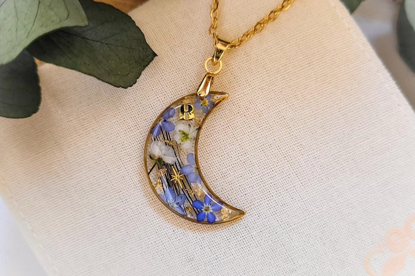 Bijoux en résine et fleurs séchées avec souvenirs de vos animaux