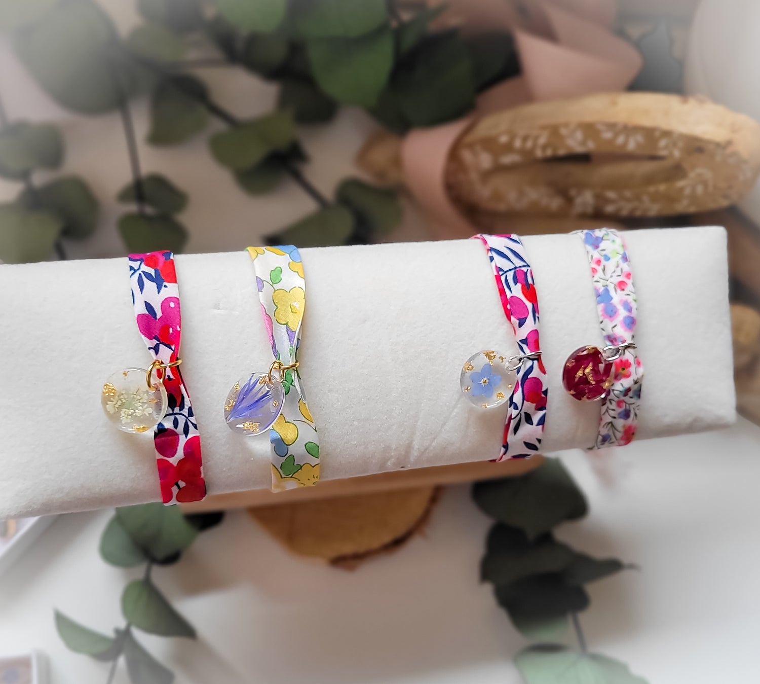 Les jolis bracelets en tissu liberty, très fleuri. L'accessoire ideal pour toutes...