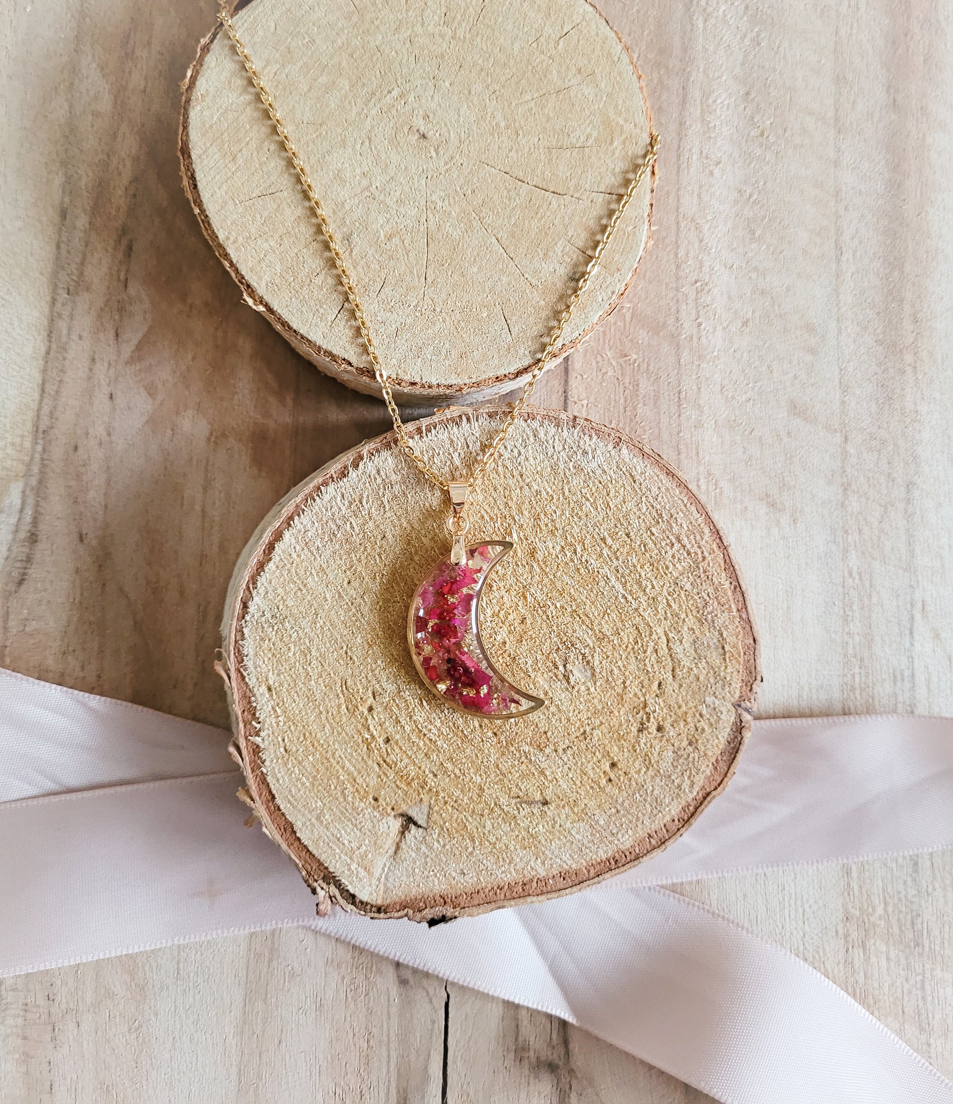 Rose petal moon necklace