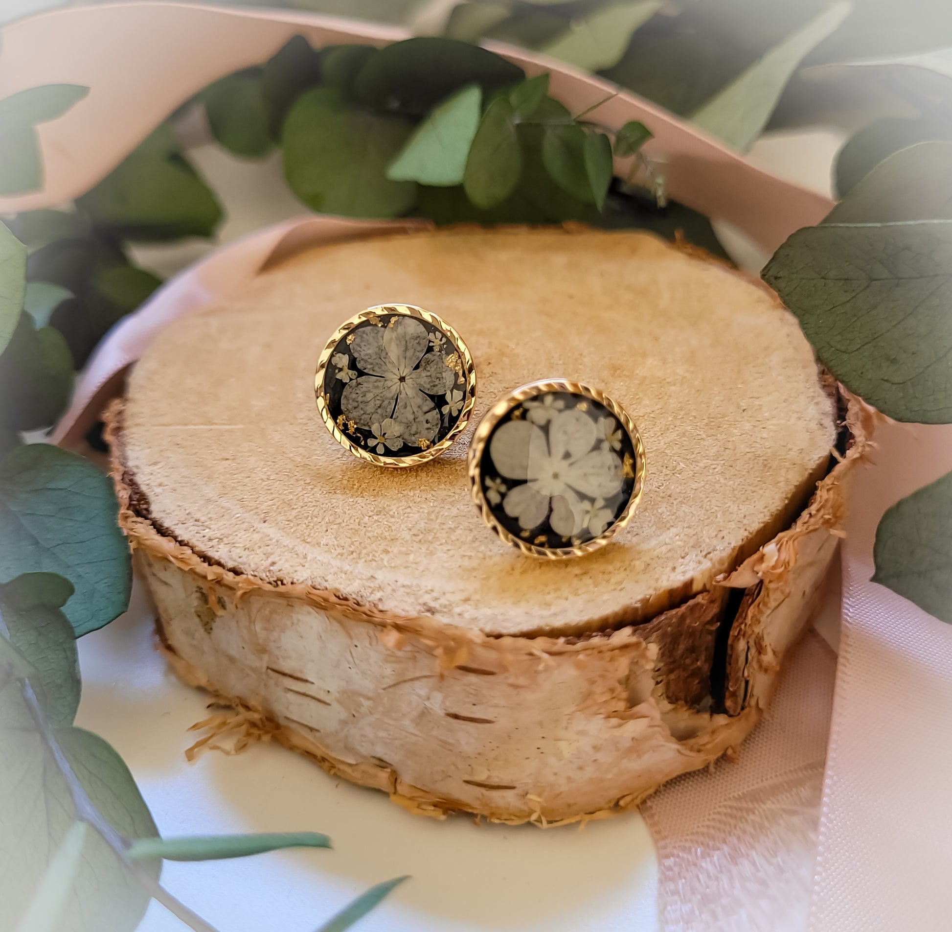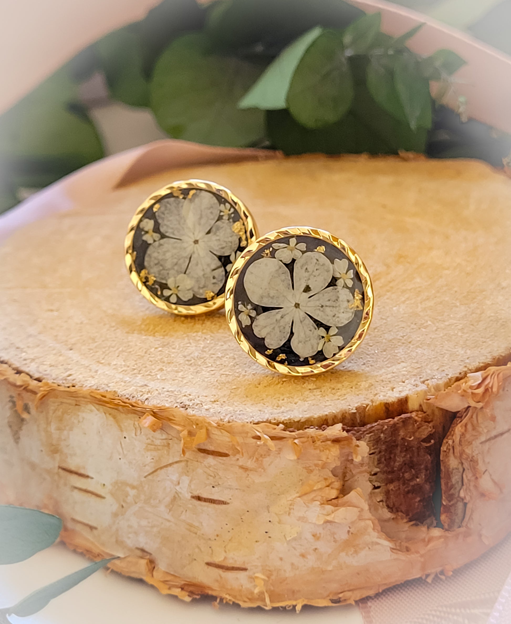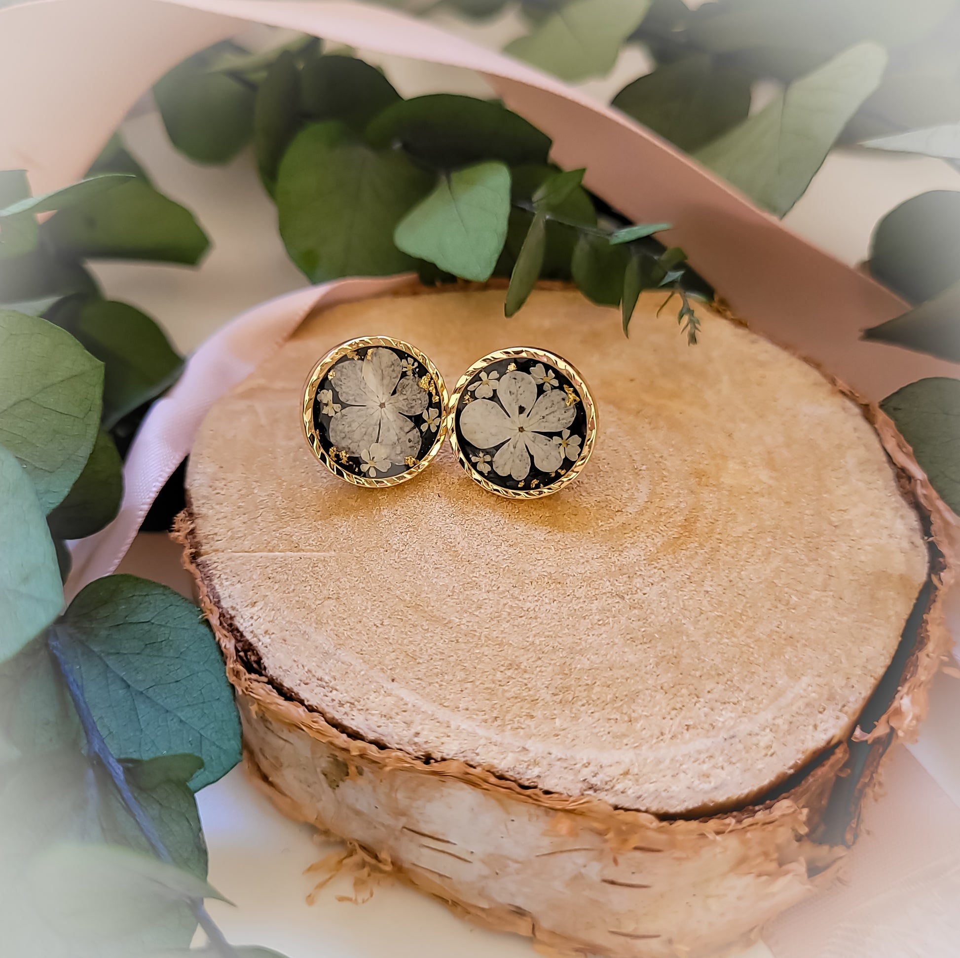 Inclusion of a small white snow globe tree flower and Queen Anne lace.
