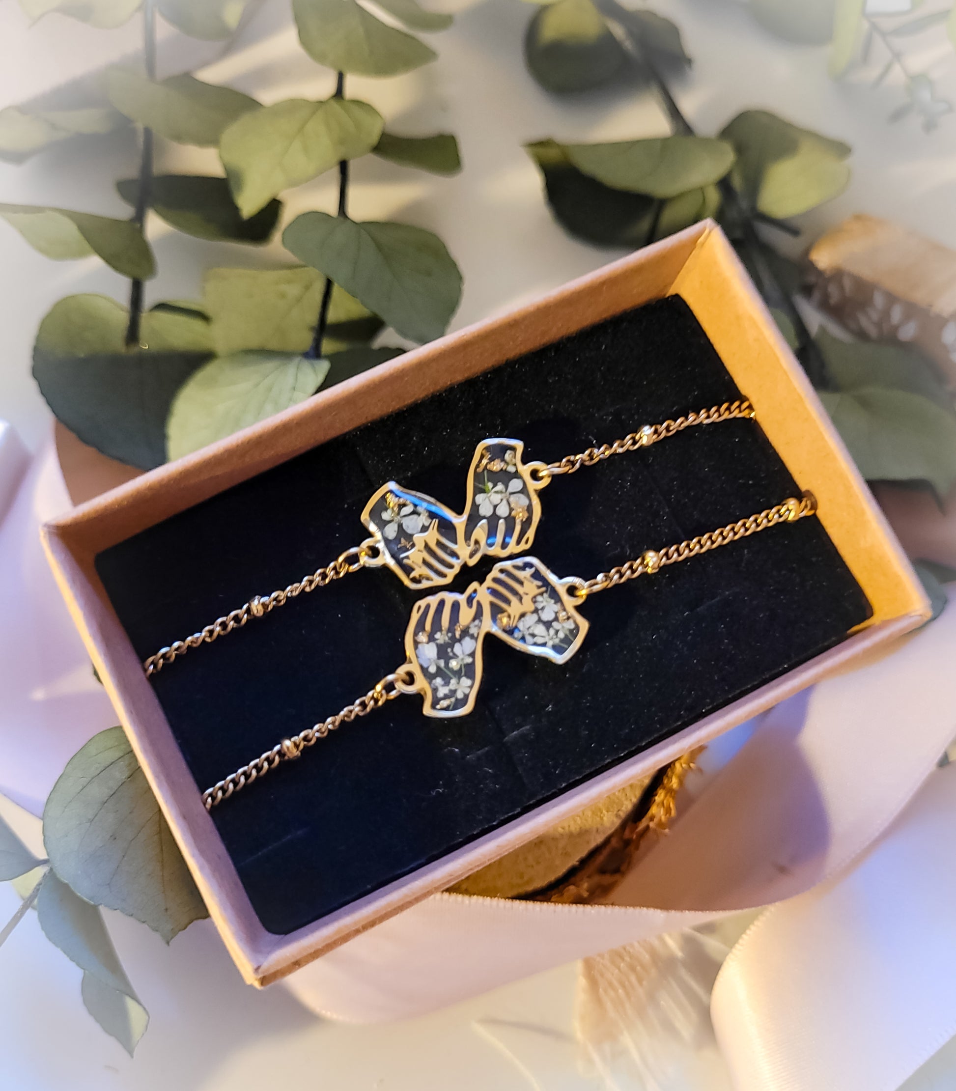 Inclusion of Queen Anne lace flowers and gold sequins.