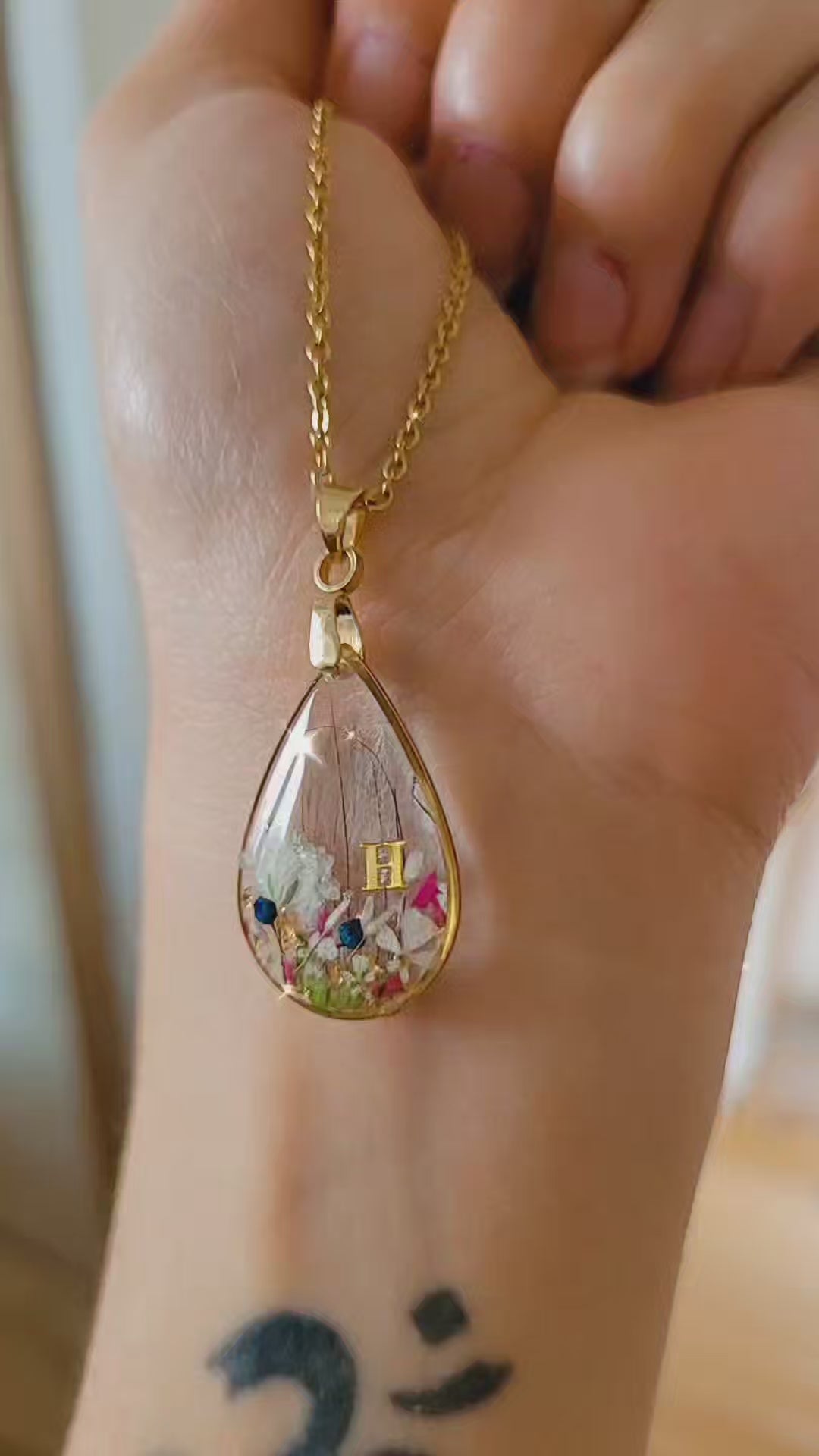 - choisissez en écrivant dans la partie texte, une initiale et/ou un symbole (l'initiale sera du même coloris que la chaîne et pendentif.)