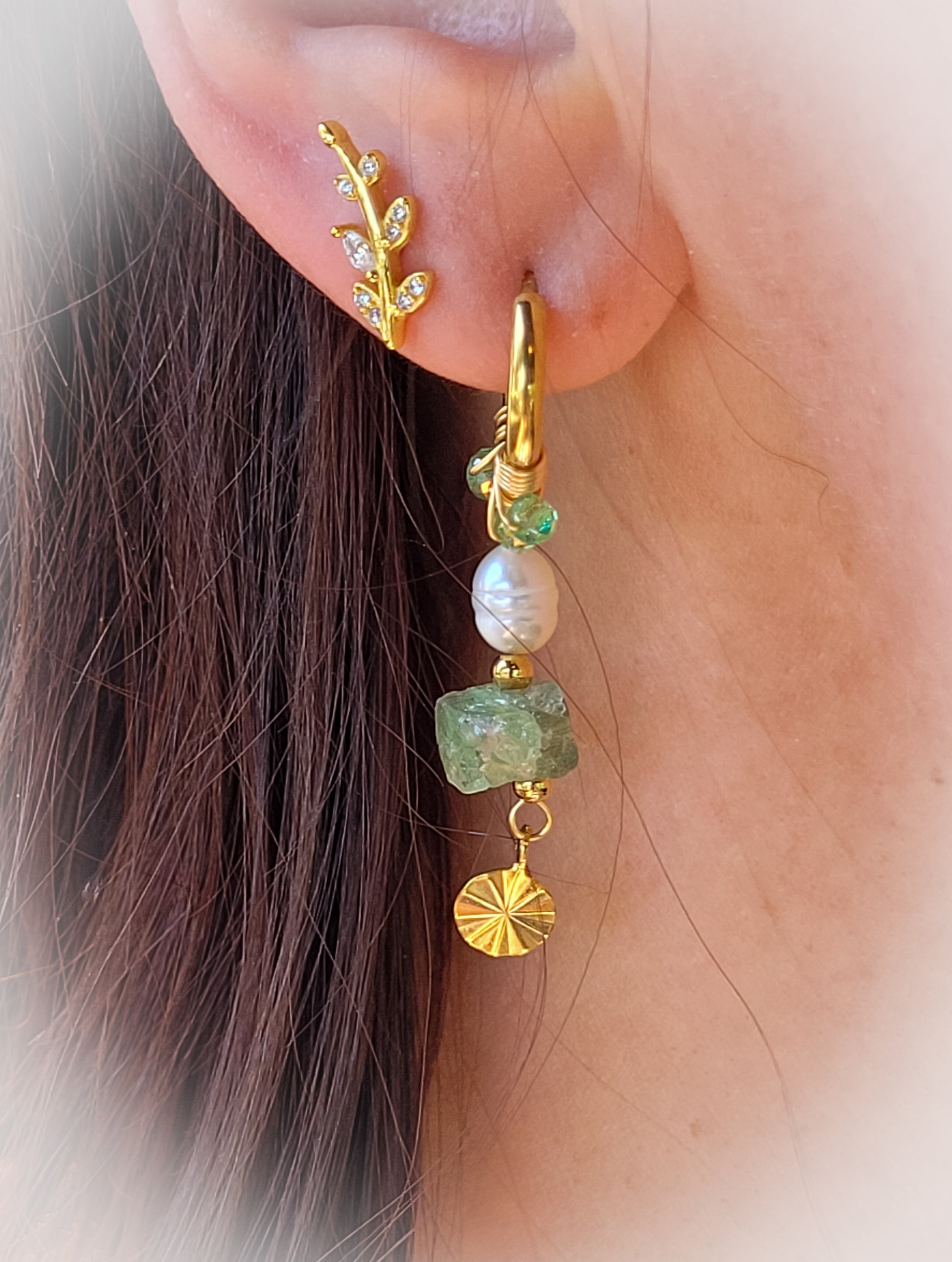 La touche de couleur vert d'eau de la pierre et la nacre de la perle d'eau douce apportent de la clarté à vos oreilles !