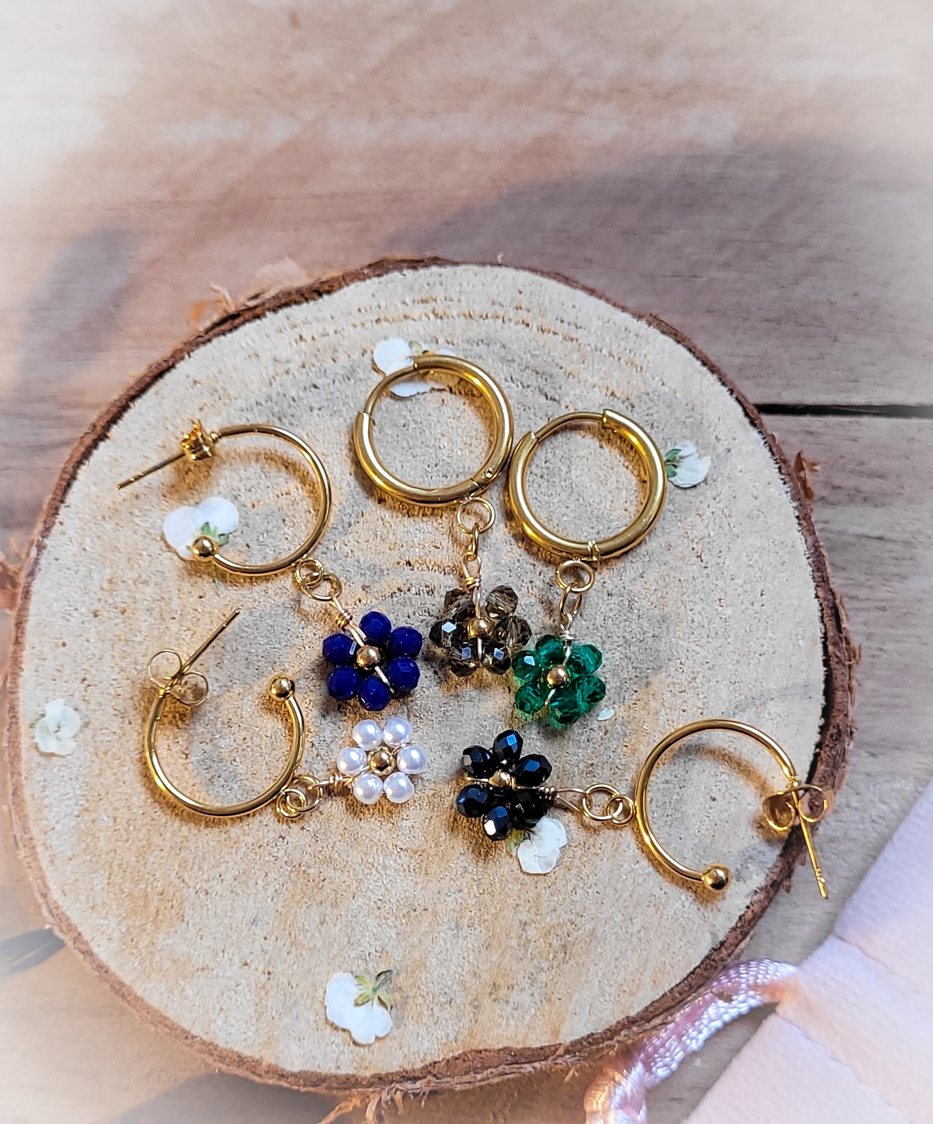 Elles sont composées de petits pendentifs en forme de fleurs.