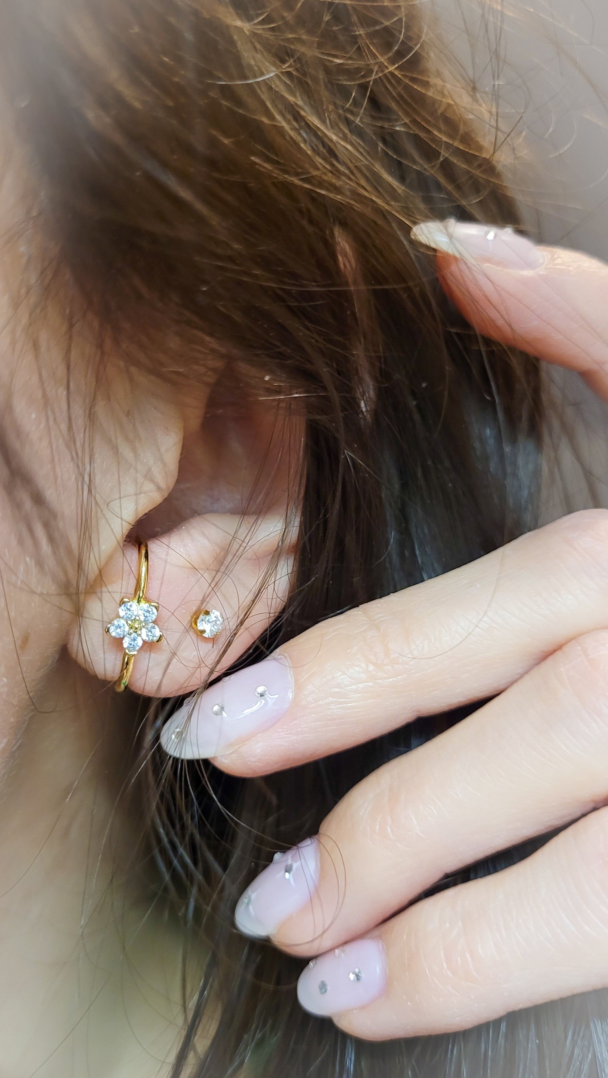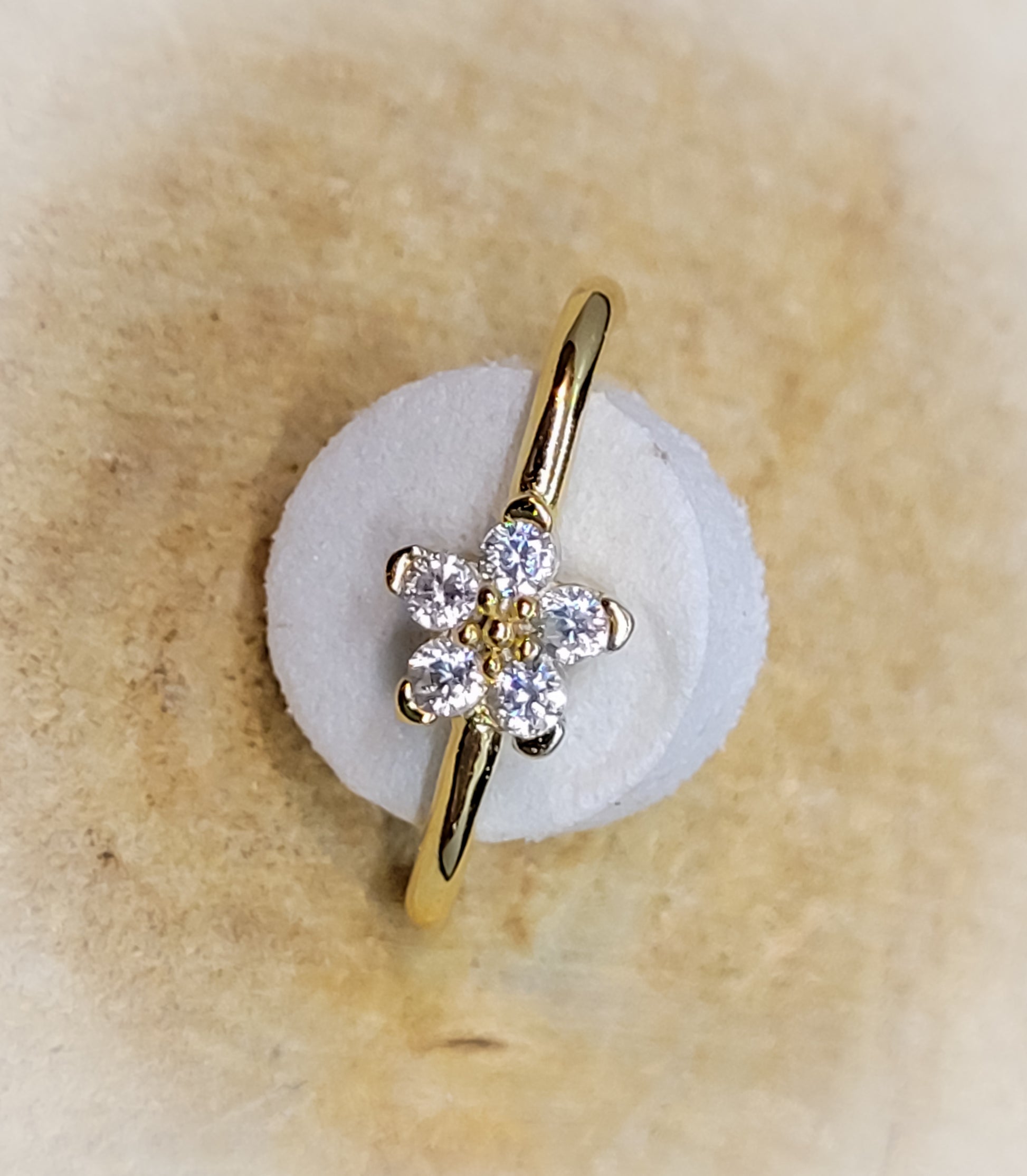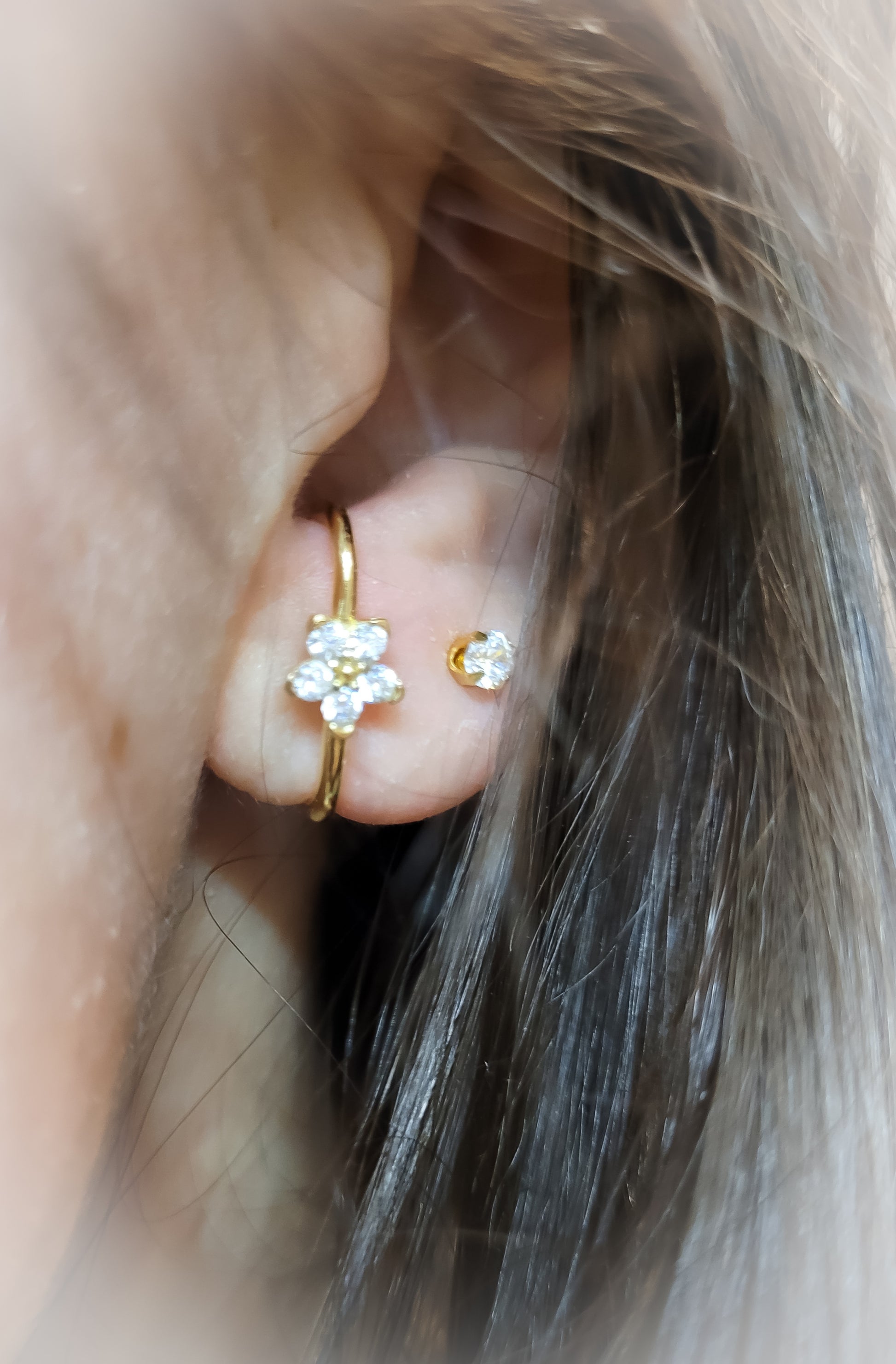 Mono boucle effet bague d'oreille avec fleur en zirconium.